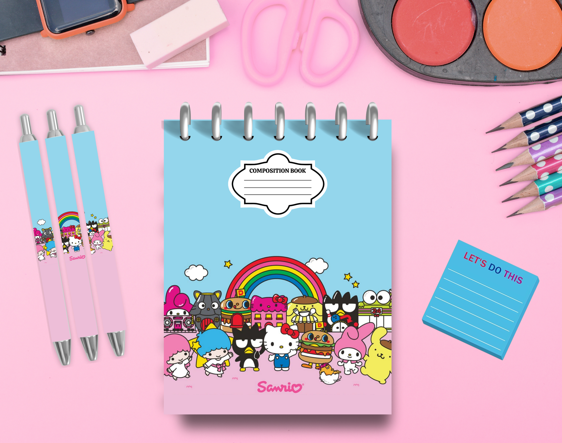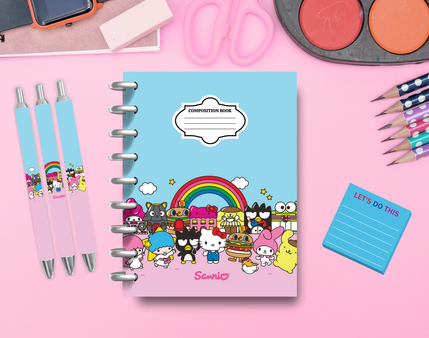7 x 9.25-inch notebook with holographic laminated covers for protection. Discbound and refillable, with 120 pages that include both lined and dot grid layouts. The 120gsm paper prevents pen bleed, keeping your writing clean. It also comes with a matching pen and sticky notes.